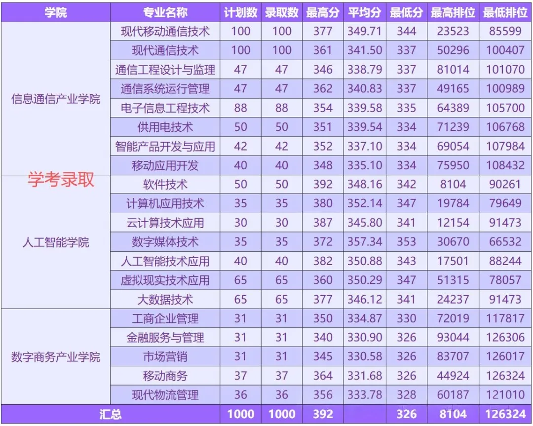 春季高考院校各专业录取分数线是重要的择校参考之一,通过往年专业最高、最低录取分以及排位,可以直接看出该校专业的冷热程度。
