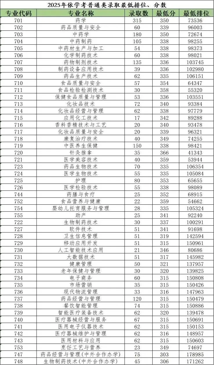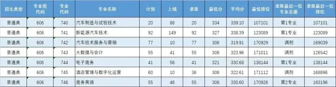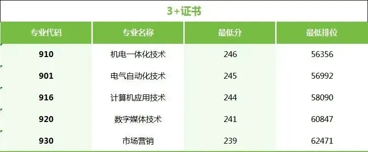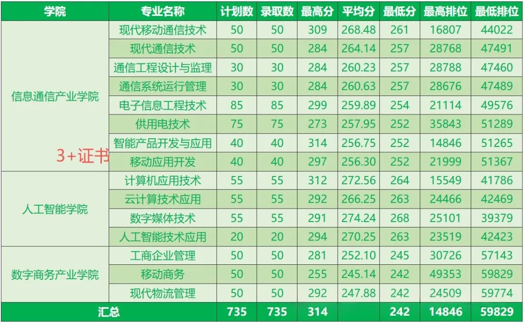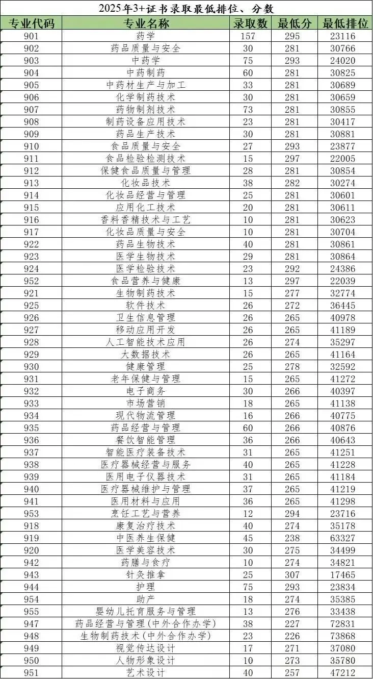 相比2024年,该校学考普通类最低排位下降8.3万,3+证书普通类最低排位下降17.5万,今年各专业投档情况如下: