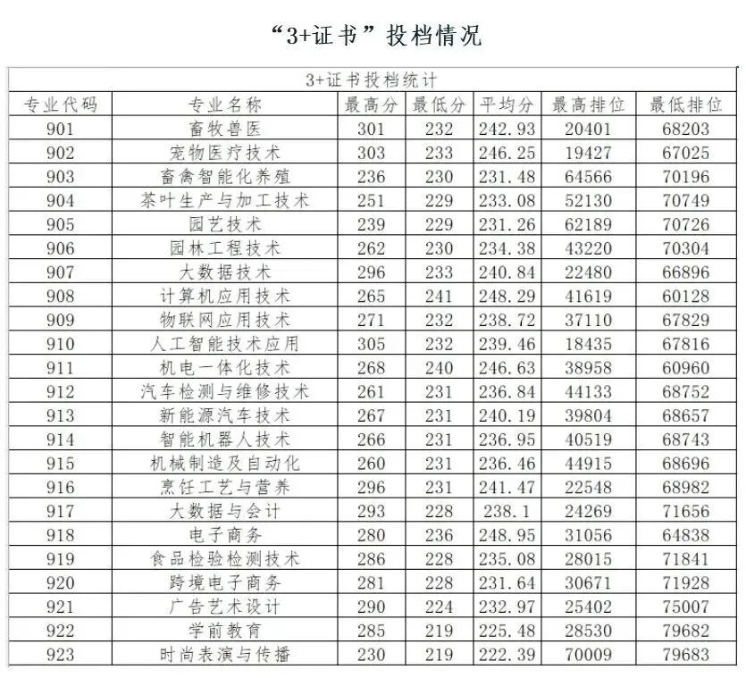 3+技能证书投档分数线