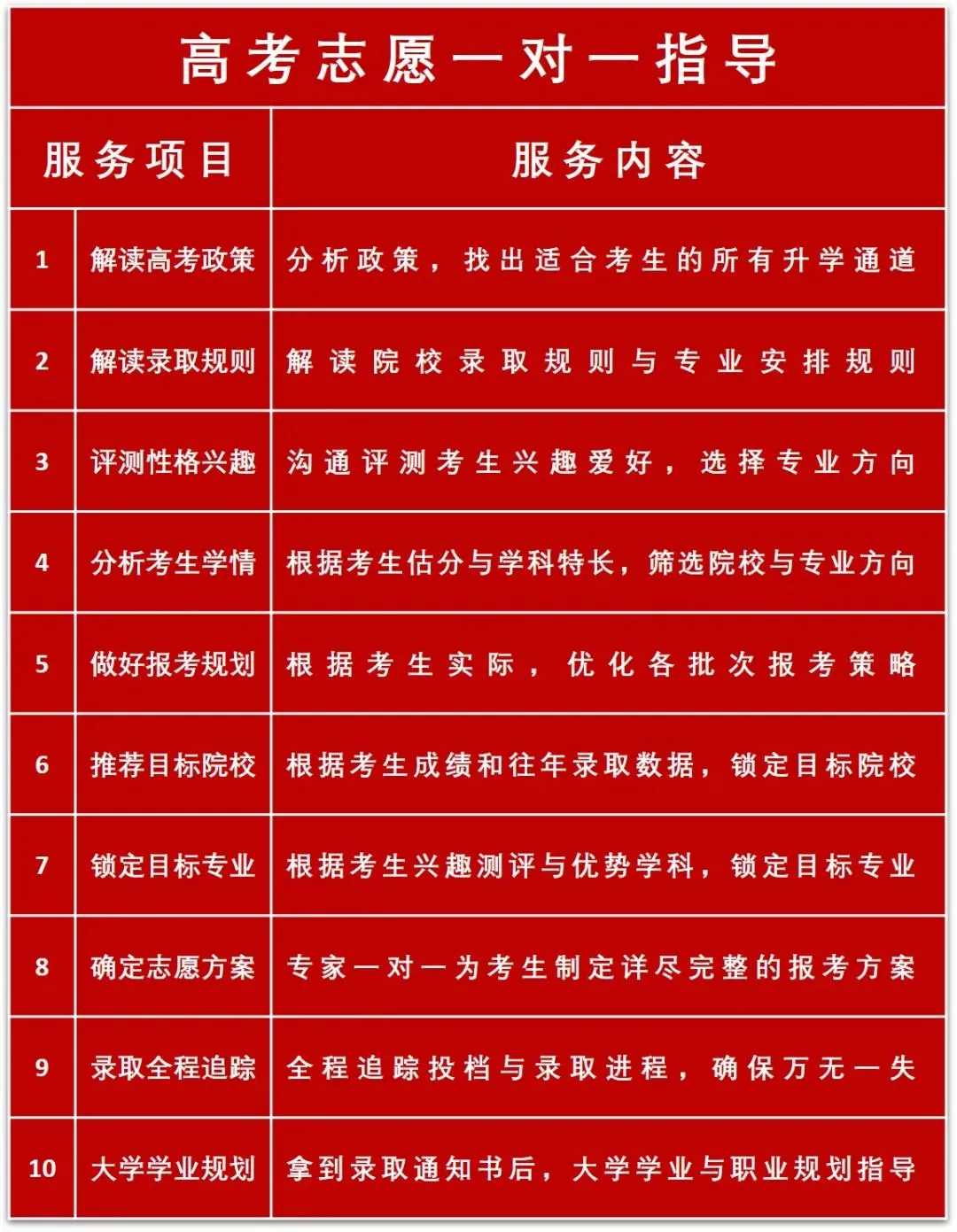 百年育才罗湖校区是通过全方位的数据分析,深度解读各大学和专业的发展趋势,为学生提供最准确、最全面的信息支持。同时,我们还将根据学生性格特点、兴趣爱好、职业倾向、优劣学科、能力特点、职业性格等为考生进行院校筛选,从学生需求出发、量身定制个性化的志愿填报方案,帮助学生分尽其用,争取分数效益的最大化,让考生的高考之路更加明朗!