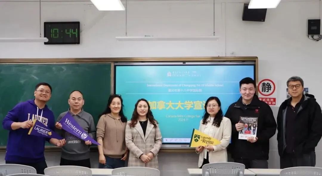 周三上午大课间,国际部的教室里来自加拿大的大学招生官正在介绍学校的特色专业和申请要求,教室内座无虚席,学生们专注地记录着关键信息。