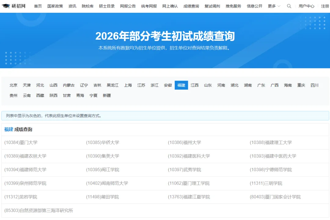 一些目标院校官网会公布查分方法,进入目标院校研究生院官网找到初试成绩查询窗口,根据提示进行查询。