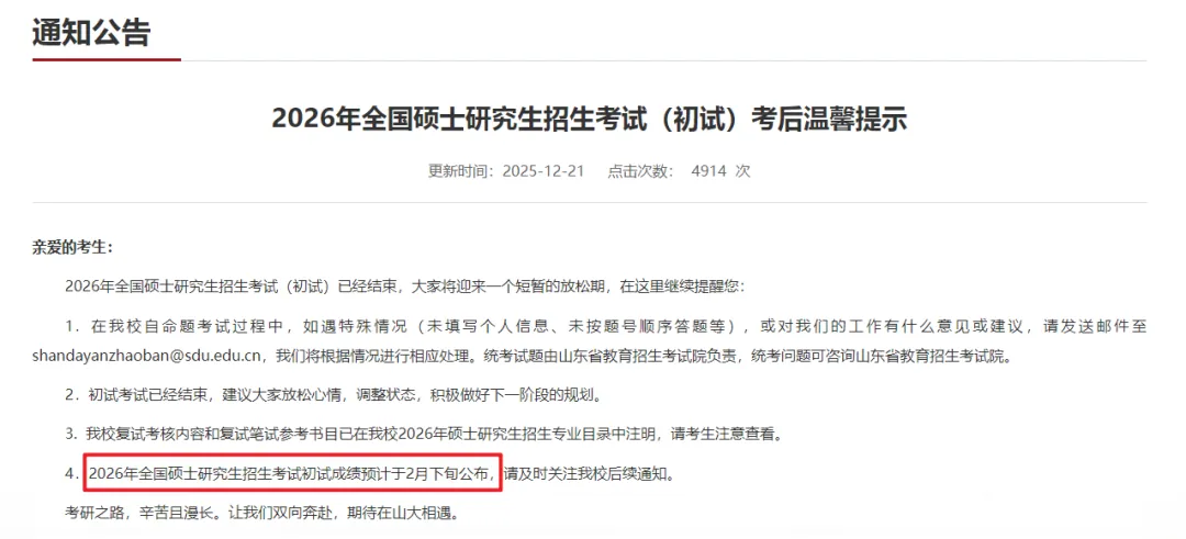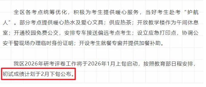 因为2026年春节在2月17日,结合上面所说的信息:初试成绩预计于2026年2月下旬公布,再结合今年春节放到2月23日,今年大概率会在2026年2月24日-28日公布2026考研初试成绩!
