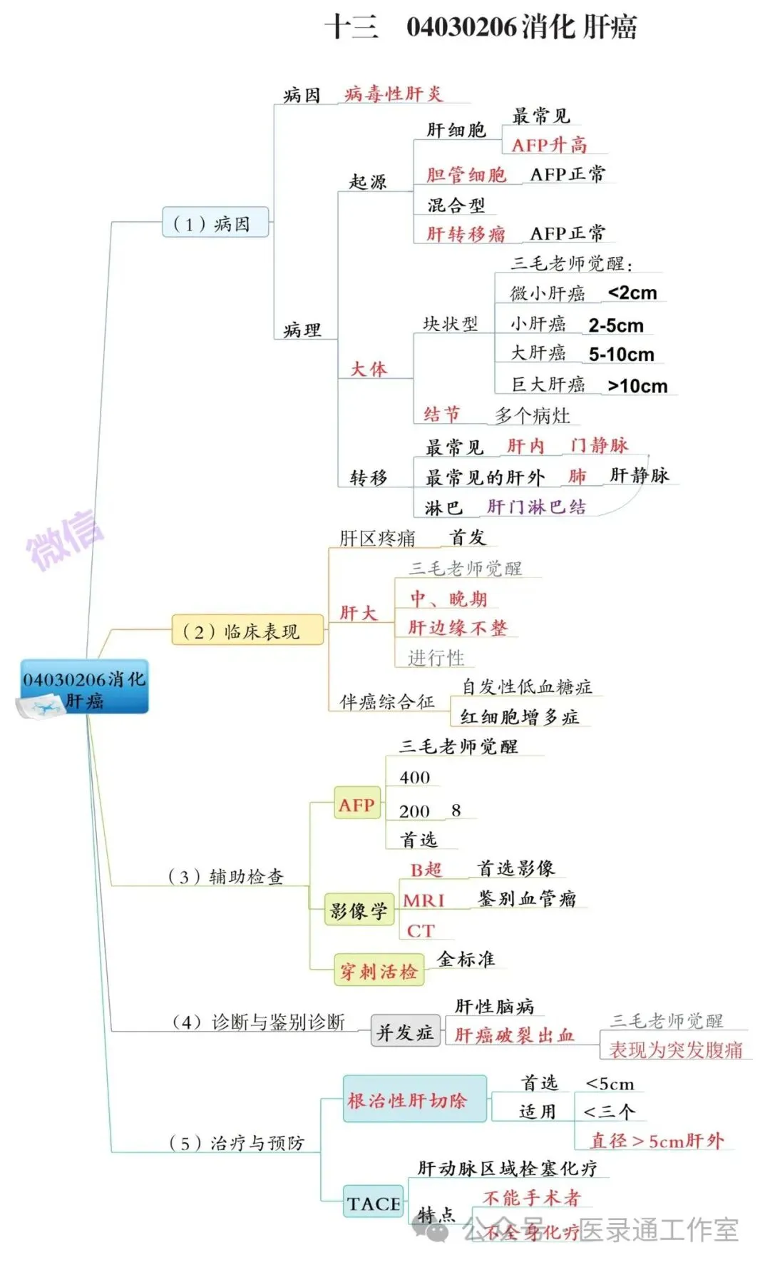 (巧记:首选AFP,确诊穿刺;筛查B超,微小CT和造影;鉴别MRI,治疗CT)