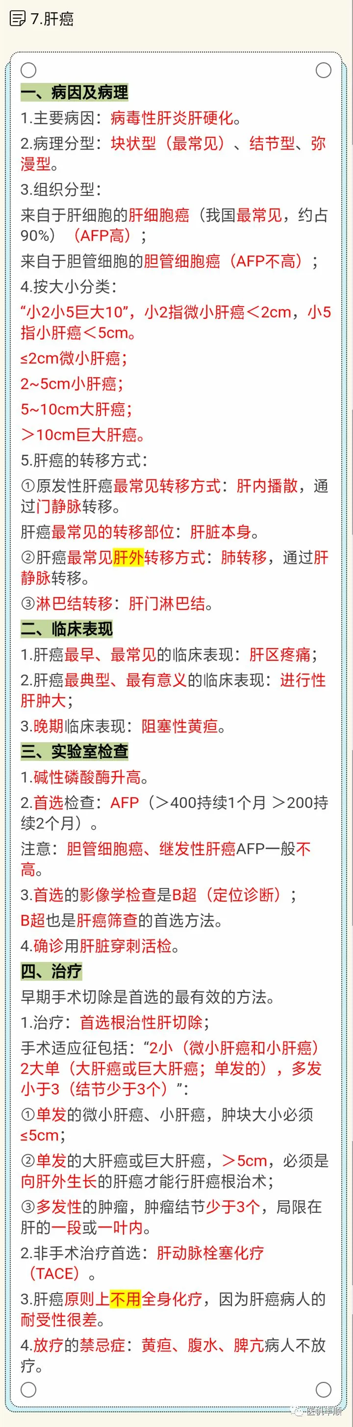 题眼:只要肝炎数年病人出现肝区疼痛肿大/AFP升高=肝癌