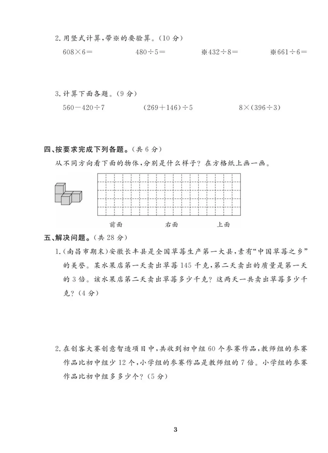 2025秋期末考试卷数学苏教版一二三四五六年级上册