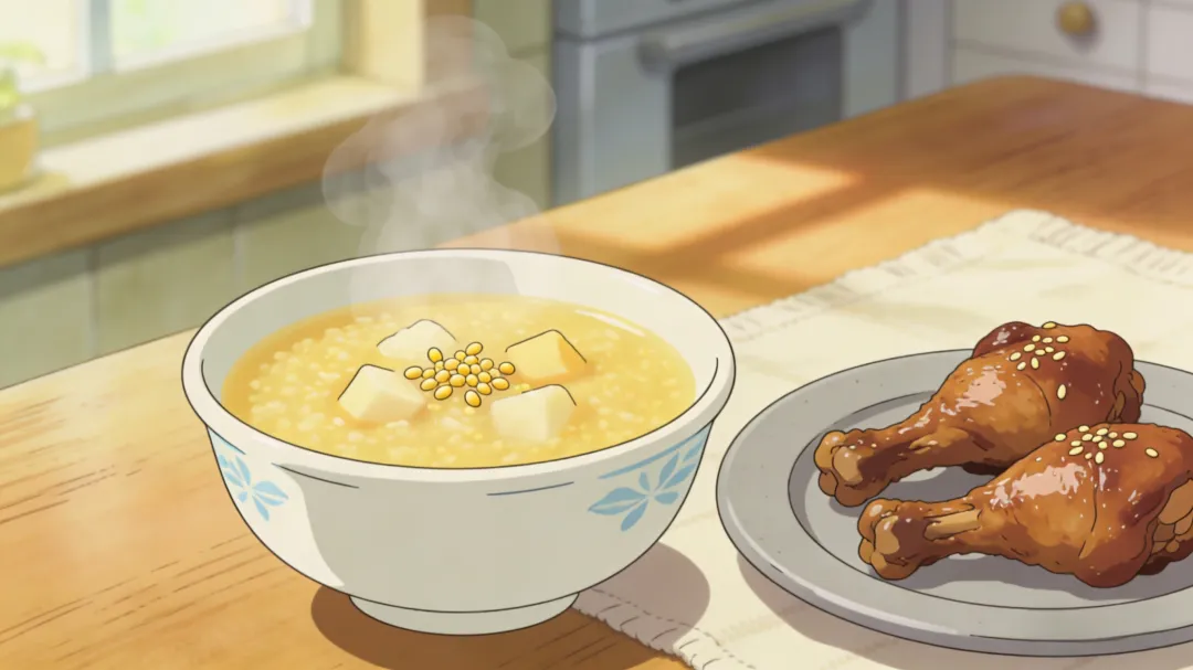 三、山药小米粥+卤鸡腿:暖胃又补营养的舒缓餐
