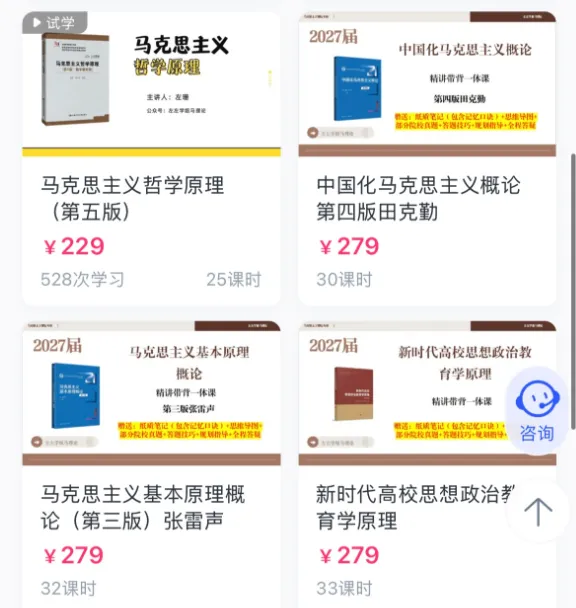课程试听、讲义试看、思维导图质量与后续质量一致。