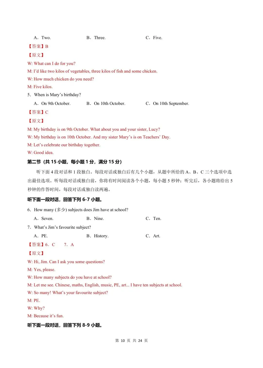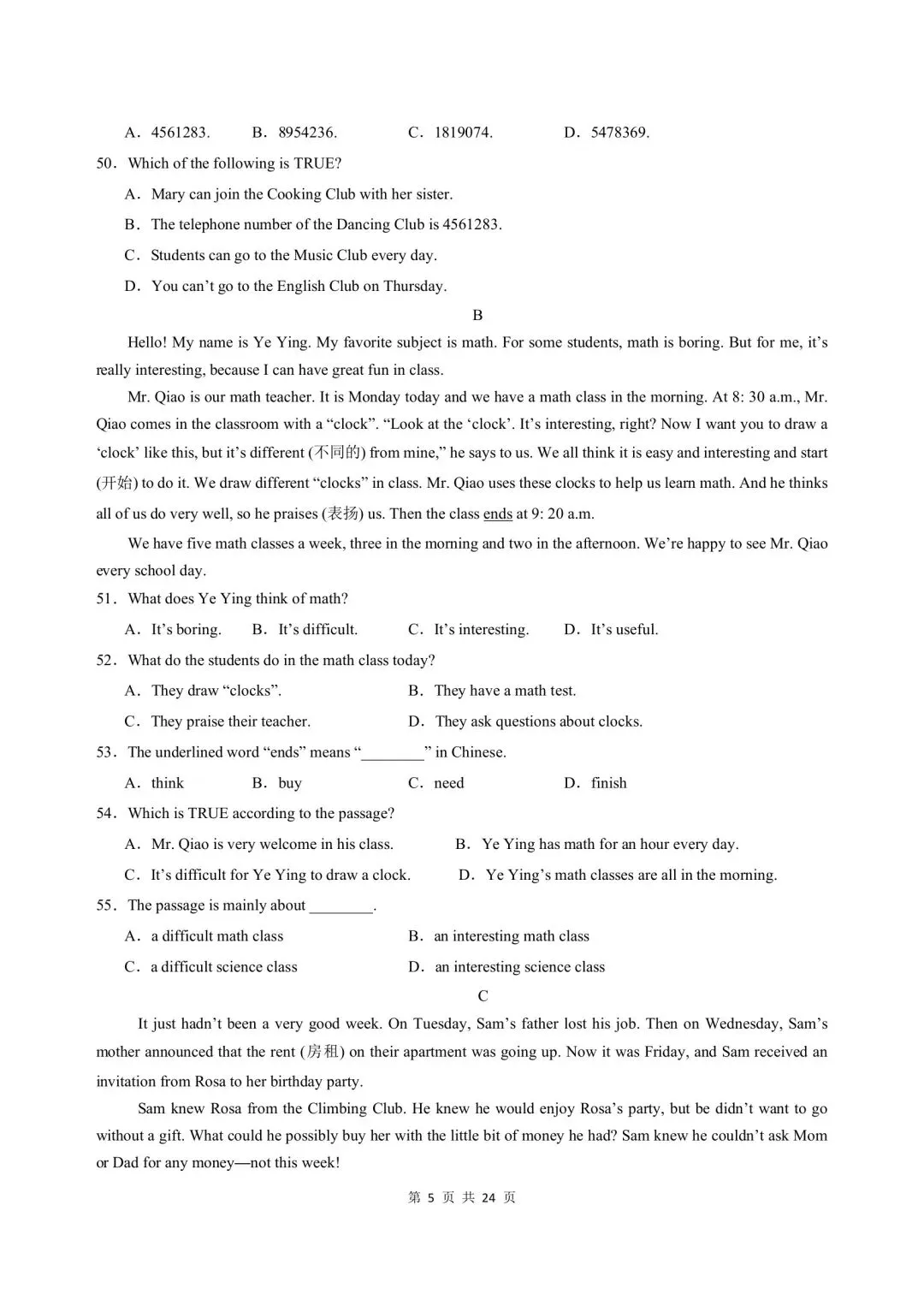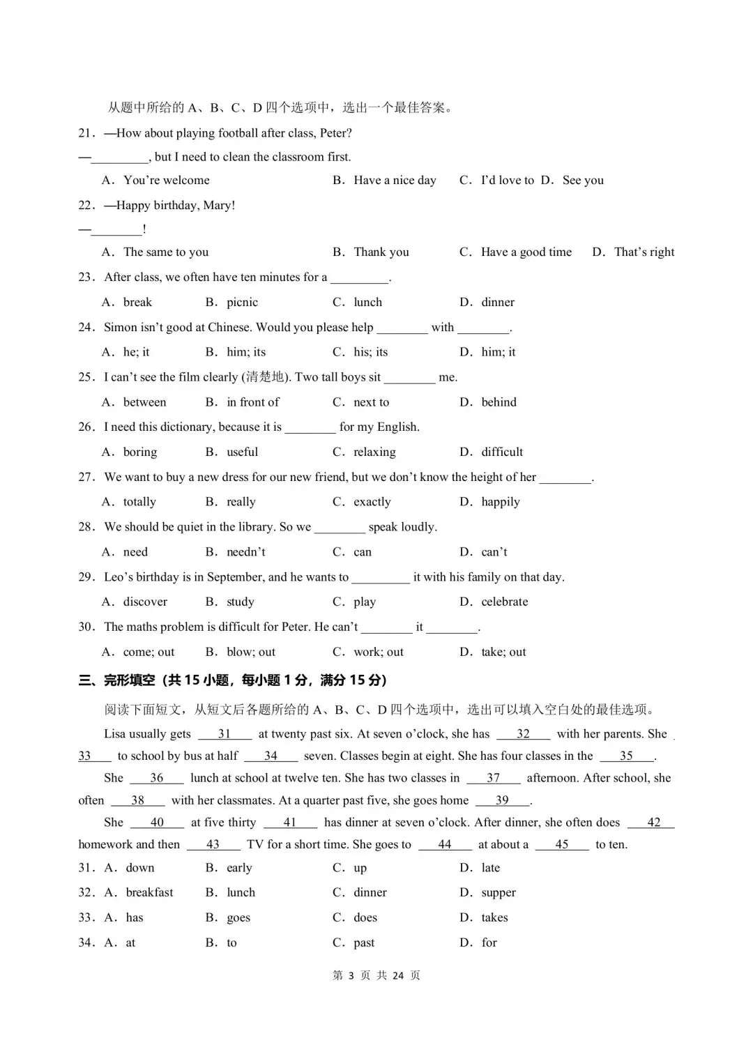 🈶完整电子版高清PDF 文档含答案可打印