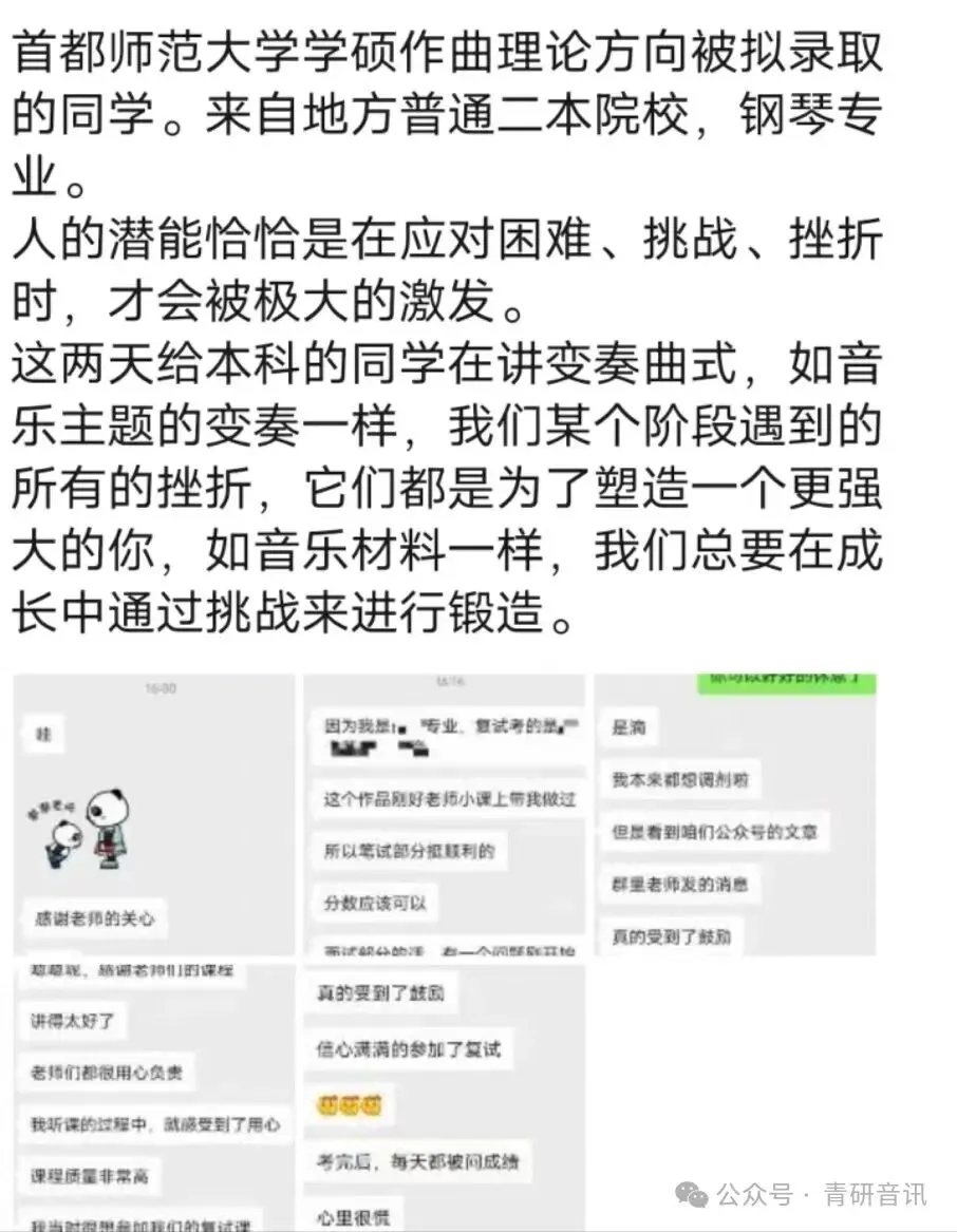 花了一些时间裁剪了一些复试课程的片段集锦, 视频中几乎涵盖了音乐考研的所有专业方向,包含了音乐教育、音乐创作、音乐史(中国、西方)、音乐作品分析、和声学、钢琴演奏、声乐(民声、美声)、琵琶、音乐心理学等等方向。作为独立的一期内容专门发出来,希望能帮助到正在备考专业课面试的同学们。