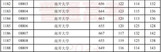 代号05、06、07、08、10、11均为“物理+化学”,最低分为564分。