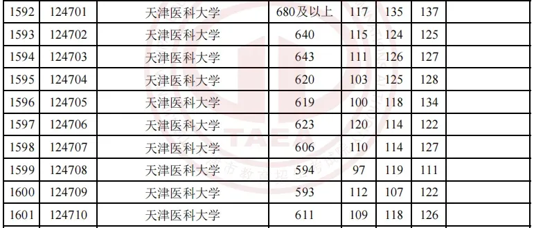 代号01、02、03、05、06、08是“物理+化学+生物”,最低分为594分。