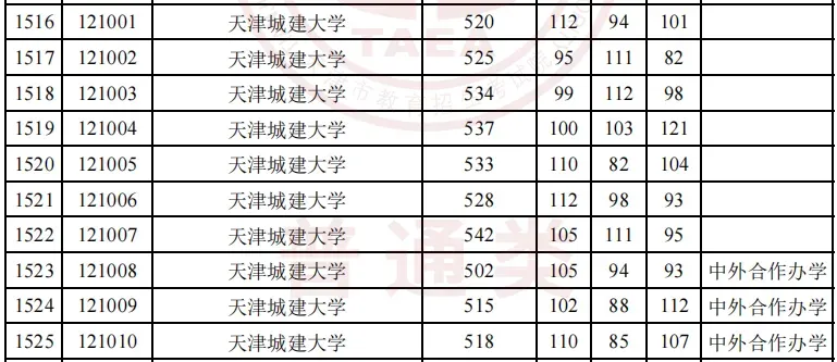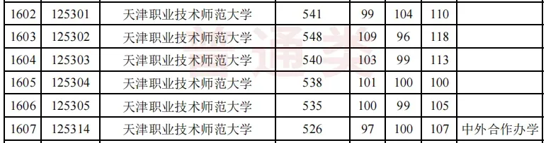 天津职业技术师范大学联合培养的组均为“物理+化学”,最低分为511分。