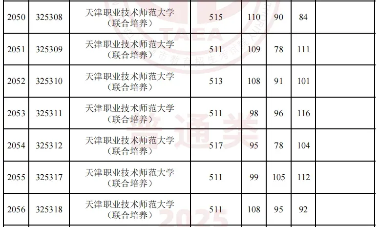 2024年天津职业技术师范大学联合培养专业最低分500分。