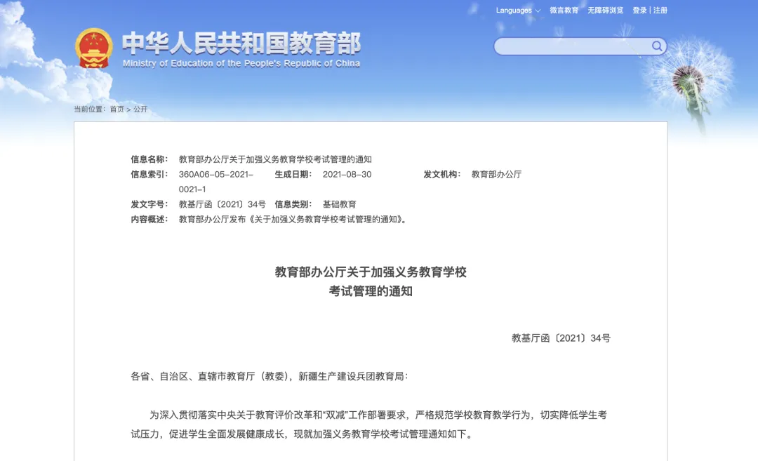 近日,教育部办公厅印发《关于进一步加强中小学日常考试管理的通知》,要求减少日常考试测试频次,提升日常考试质量,强化考试安全风险防范,减轻学生过重学业负担,促进学生全面健康发展。