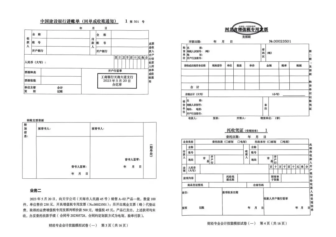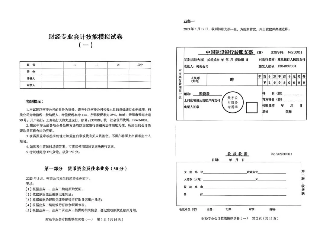 >【财经】2026年河北省中等学校对口升学考试—会计技能模拟试卷(一)