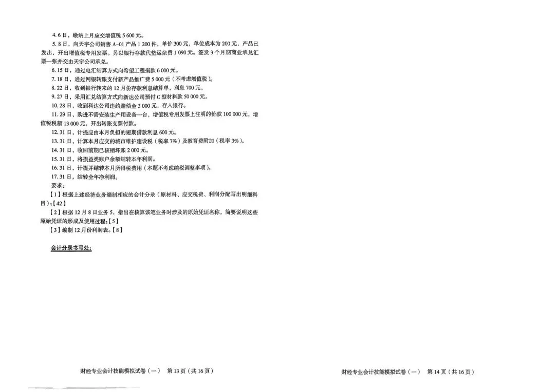 【财经】2026年河北省中等学校对口升学考试—会计技能模拟试卷(一)