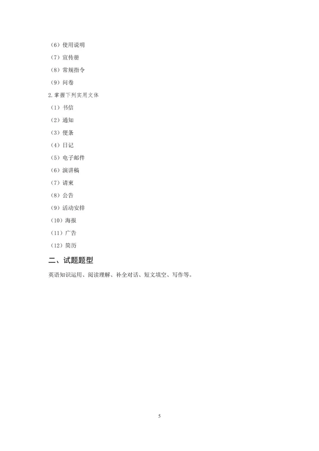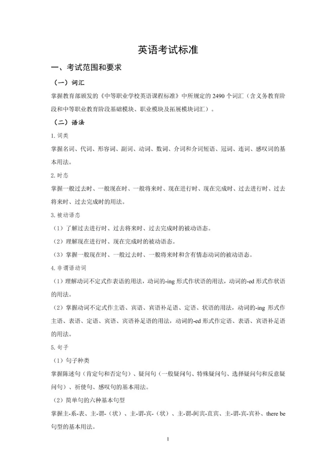山东省春季高考统一考试英语考试标准(2026年版)