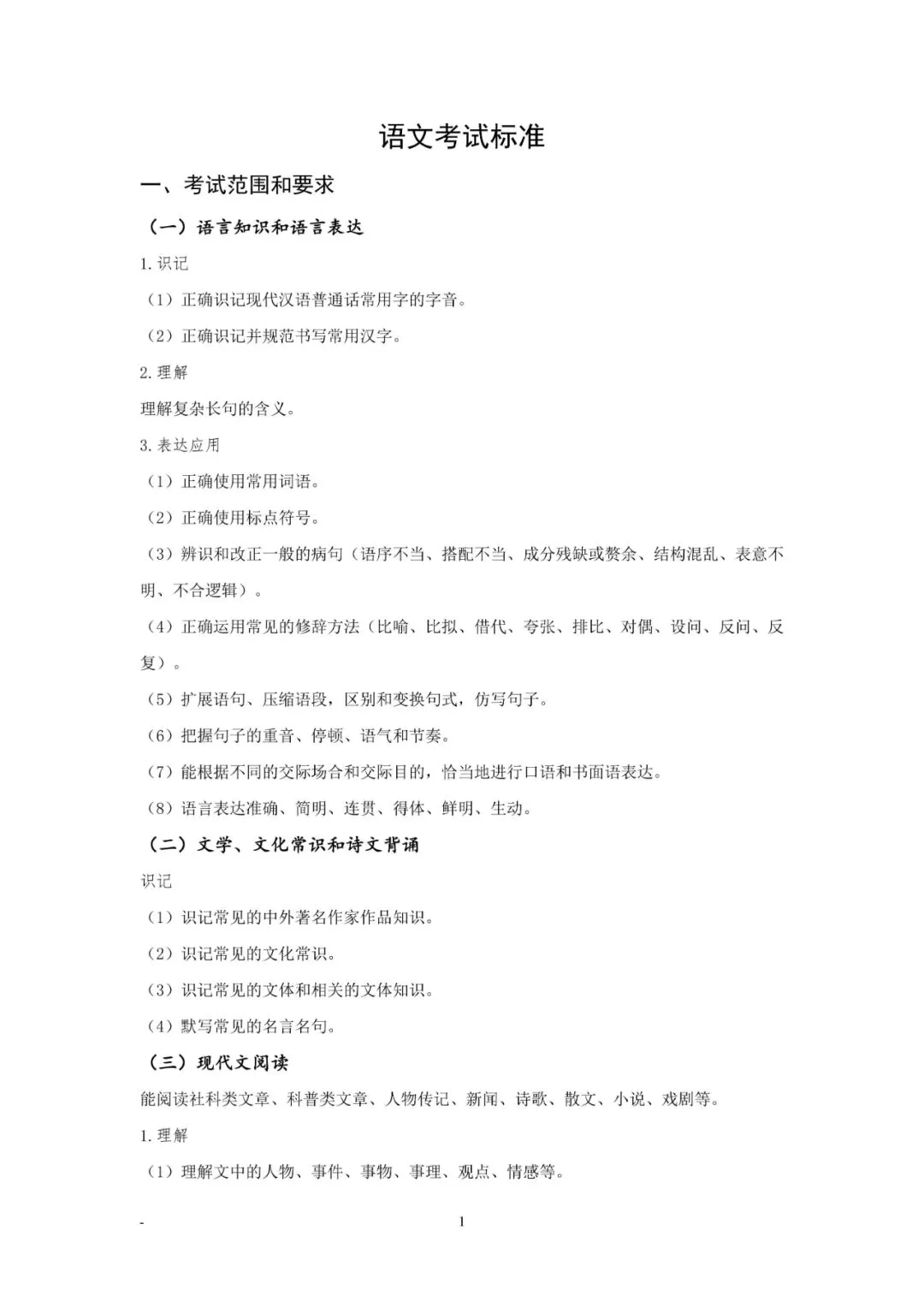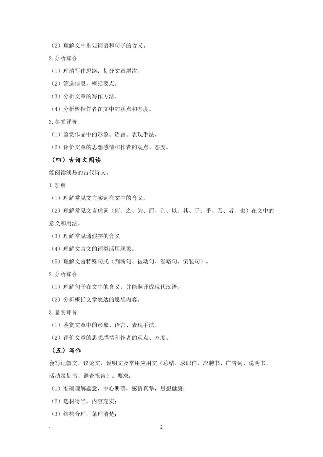 >山东省春季高考统一考试语文考试标准(2026年版)