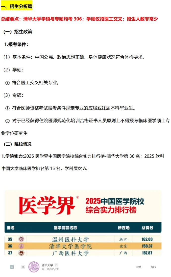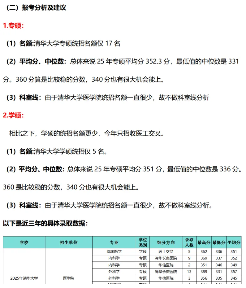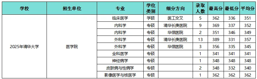 ①不含推免在内,2025年清华大学医学院招生22人(学硕5人,专硕17人)