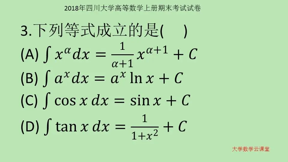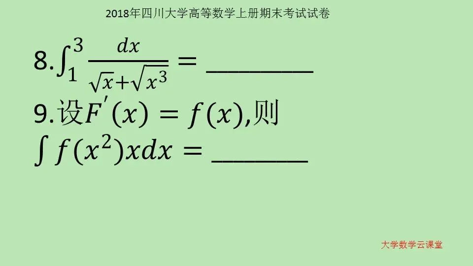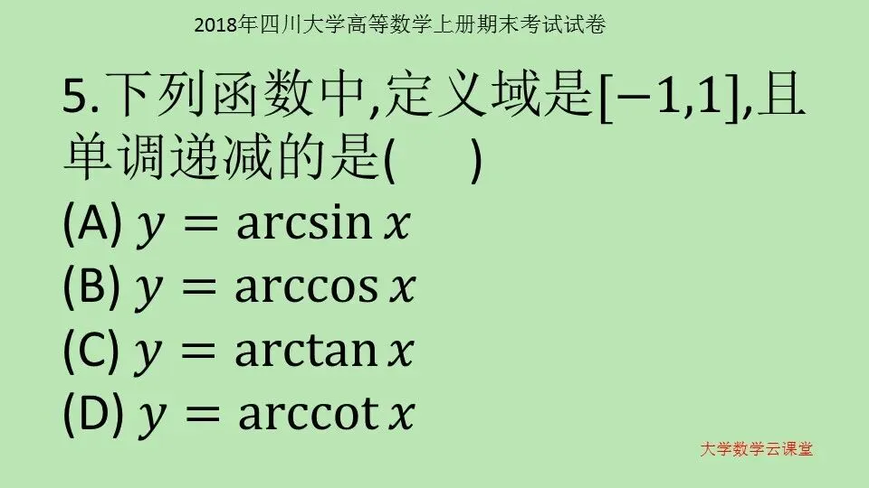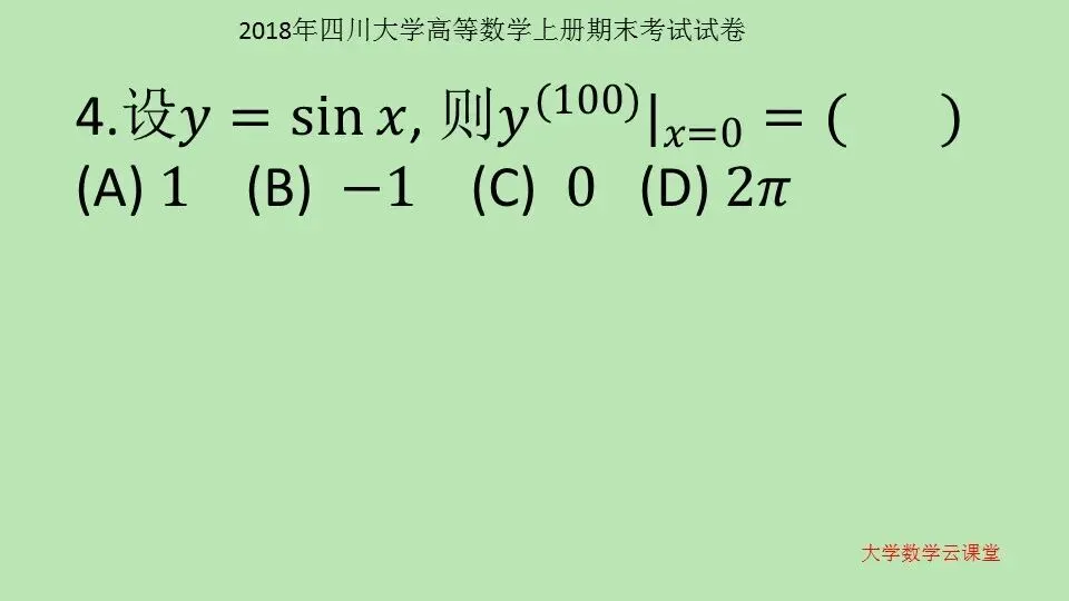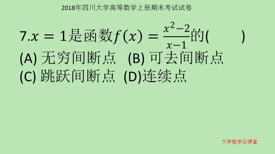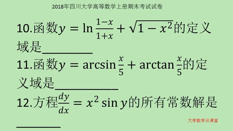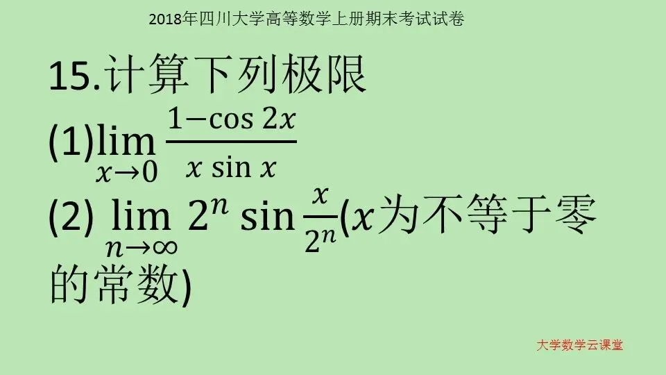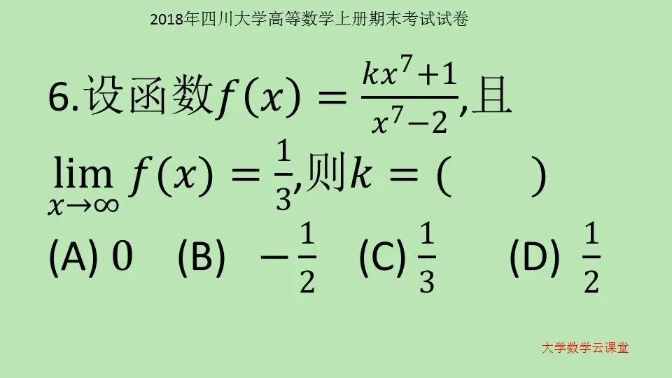 2018年四川大学 高等数学上册期末考试试卷 第56套 高等数学学习指导 高等数学10000题 微信公众号:大学数学云课堂