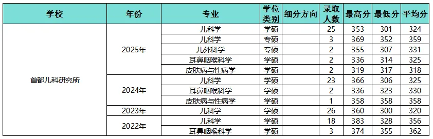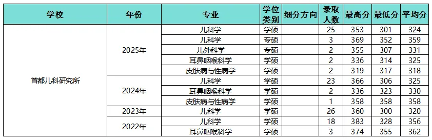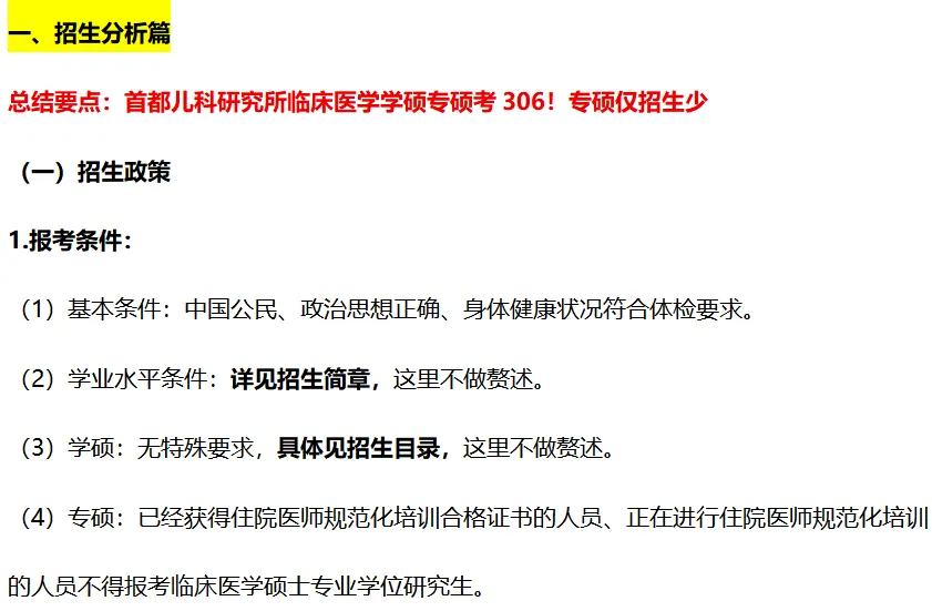 总结要点:首都儿科研究所临床医学学硕专硕考306!专硕仅招生少
