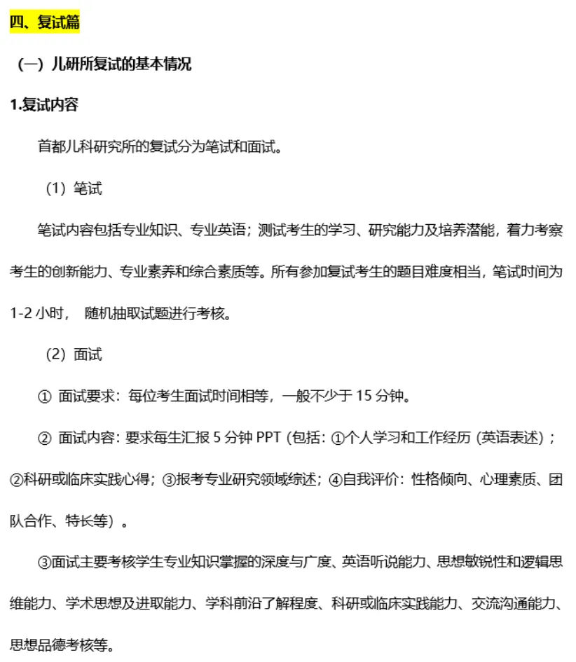四、复试篇:首都儿科研究所的复试情况、如何准备首都儿科研究所的复试(简历、自我介绍、专业课等)