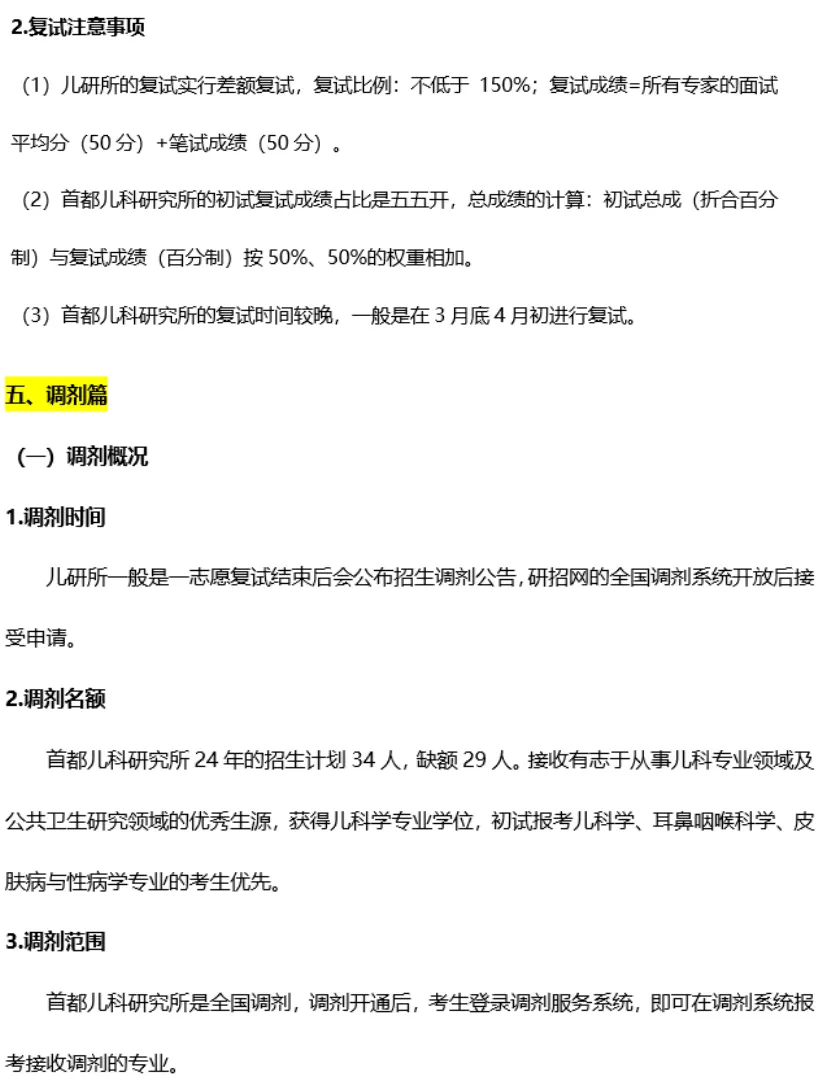 4.儿研所复试&调剂必知: