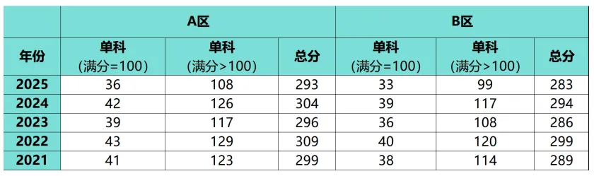 1.国家线:北京属于A区,下面是A区和B区临床医学306近5年国家线。