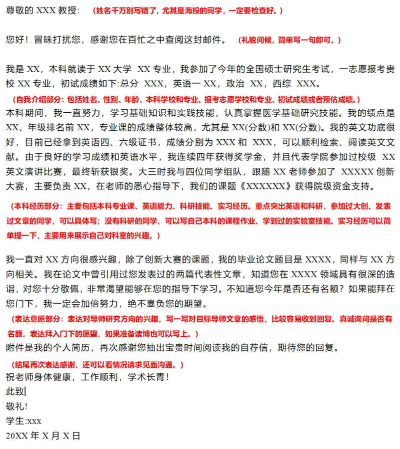 邮件主要是用来联系导师,儿研所的话一般初试成绩出来后就可以给心仪导师发邮件了。联系导师前注意搜集一下导师信息,最好对目标导师的研究方向、发表论文有所了解之后,再写邮件,邮件里要附上你的简历。