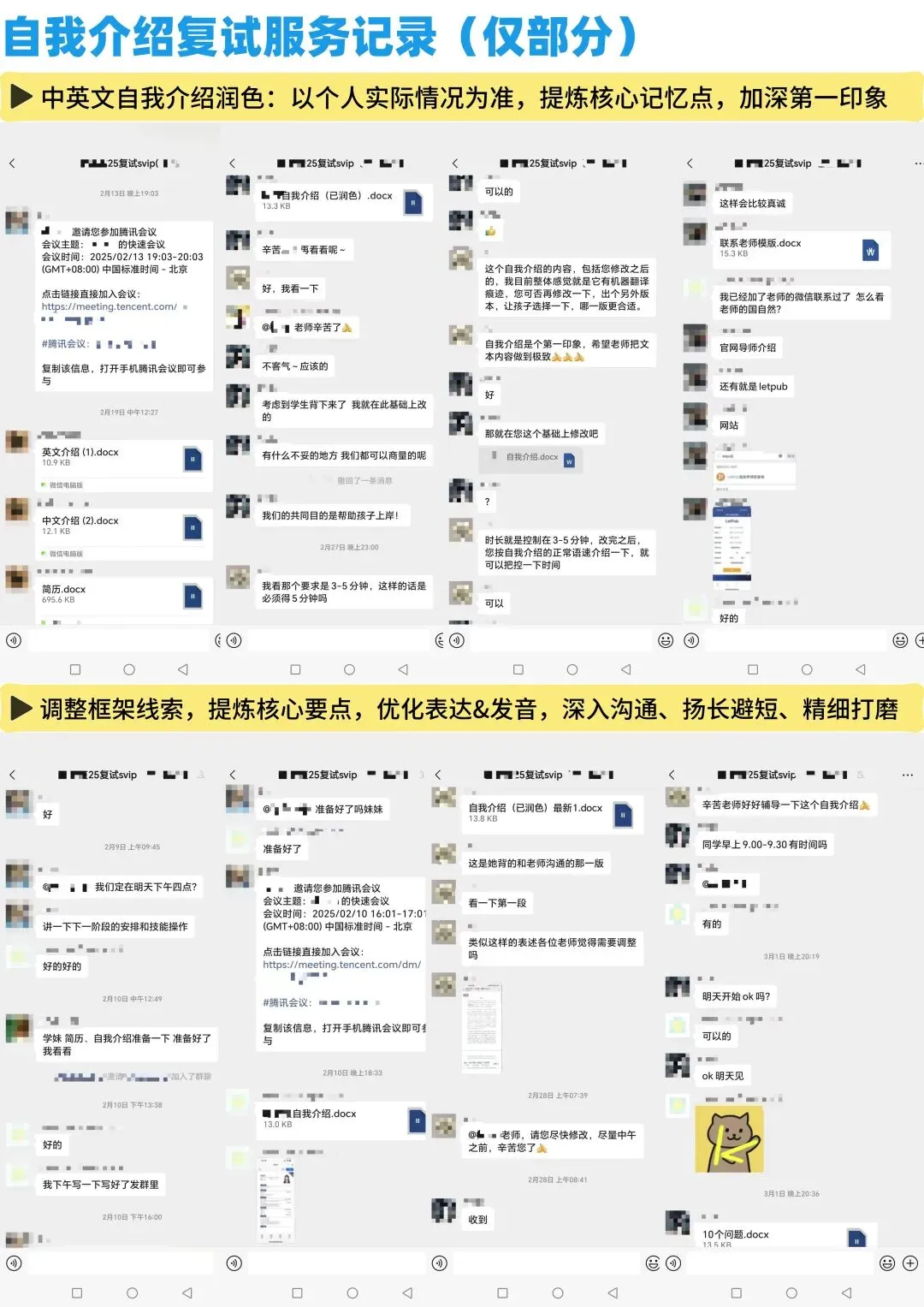 随便截几张图;另外,因为很多同学是初试报的我们的班,复试也跟着我们走,所以这一部分除了初试的服务记录外,还有一部分我们的复试服务记录。