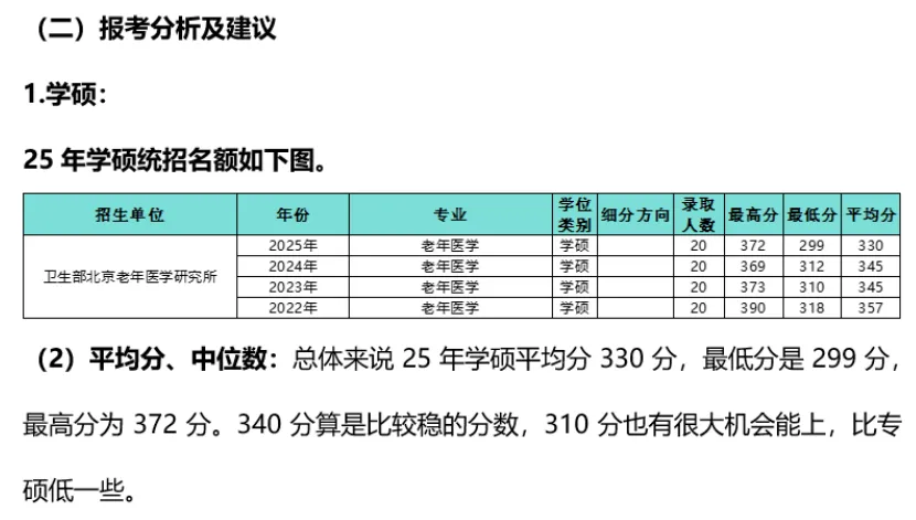 总结要点:卫生部北京老年医学研究所临床医学学硕考306!;仅招生老年医学学硕。
