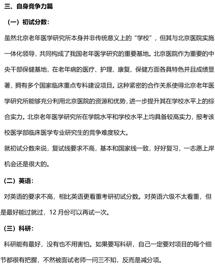 三、自身竞争力篇:报卫生部北京老年医学研究所的必备条件、卫生部北京老年医学研究所对英语&科研的要求等