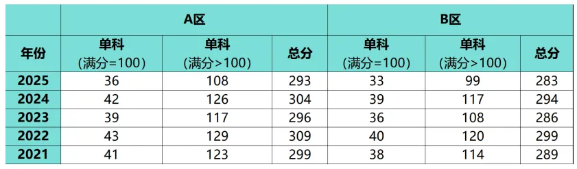 1.国家线:北京属于A区,下面是A区和B区临床医学306近5年国家线。