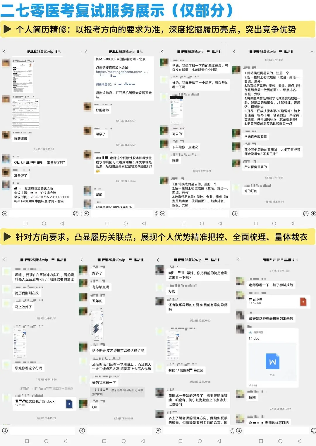 随便截几张图;另外,因为很多同学是初试报的我们的班,复试也跟着我们走,所以这一部分除了初试的服务记录外,还有一部分我们的复试服务记录。
