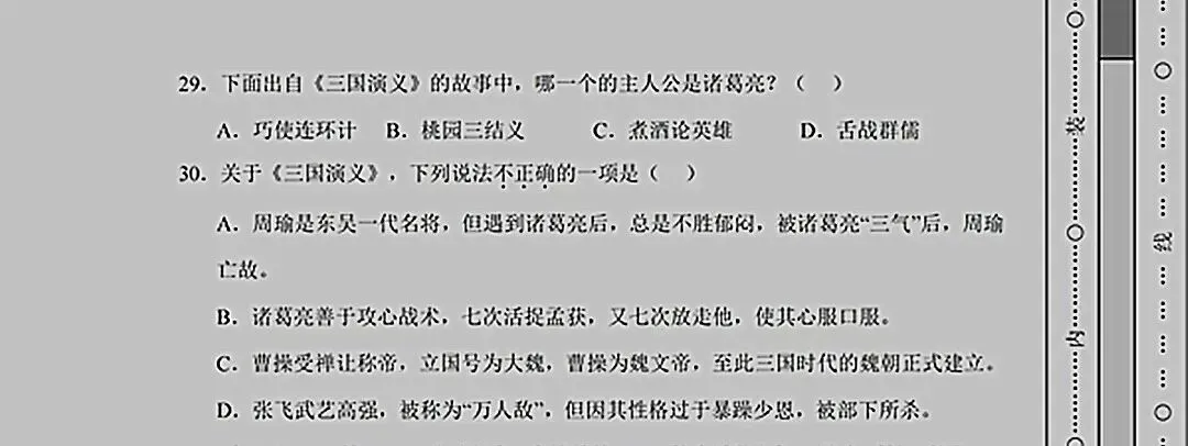 3、《三国演义》中舌战群儒、七擒孟获的人是 ( )