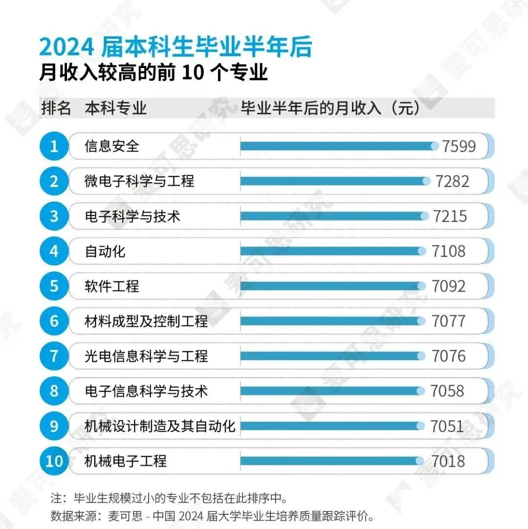 这些绿牌专业在就业市场中展现出强劲的竞争力,2025年的本科绿牌专业均为本科生毕业半年后平均月收入排前40位的专业。