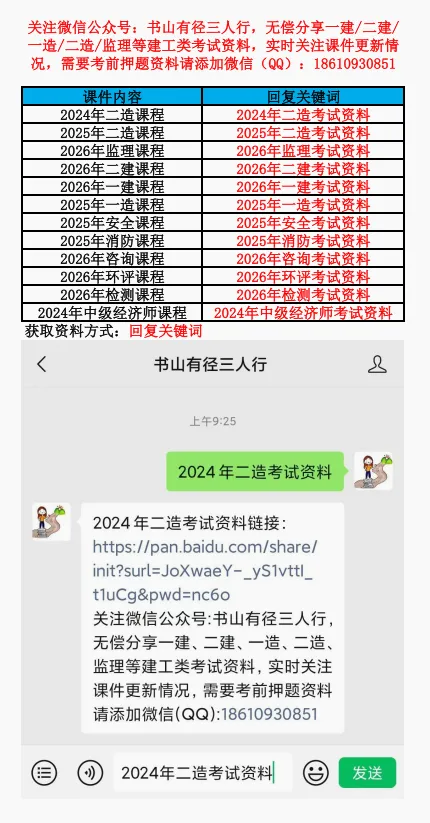 微信公众号:书山有径三人行 无偿分享一建、二建、一造、二造、监理、消防、安全、环评等考试资料,考前资料、资讯时时更新。关注我!陪你过考~
