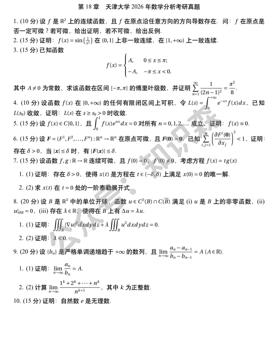 >天津大学2026数学分析考研真题