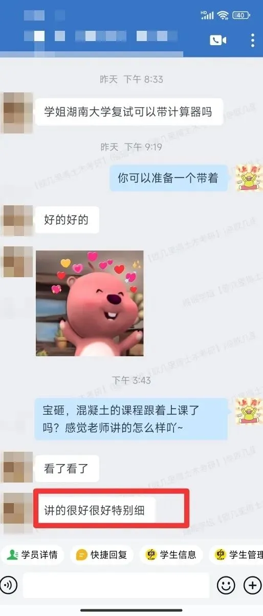 复试班答疑服务一直提供到调剂系统关闭,答疑学长学姐均为985高校研究生,从事复试答疑工作长达7年,具有丰富经验。
