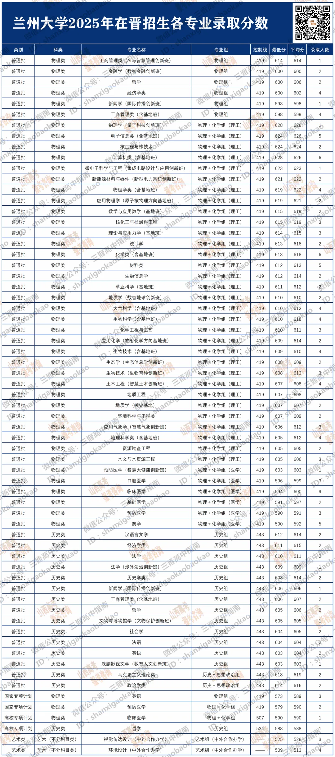 当前位置:首页>录取分数线>兰州大学2025年在晋招生各专业录取分数线数据!