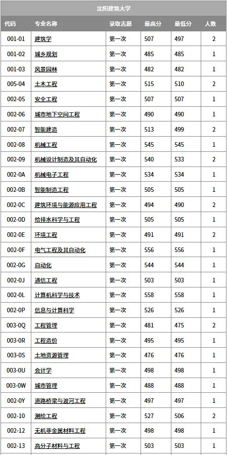 沈阳建筑大学——2025年各批次录取分数线及录取人数统计