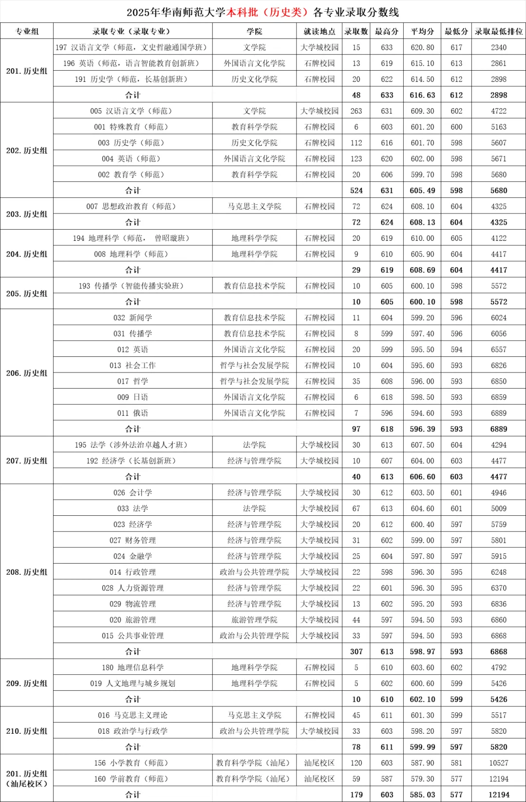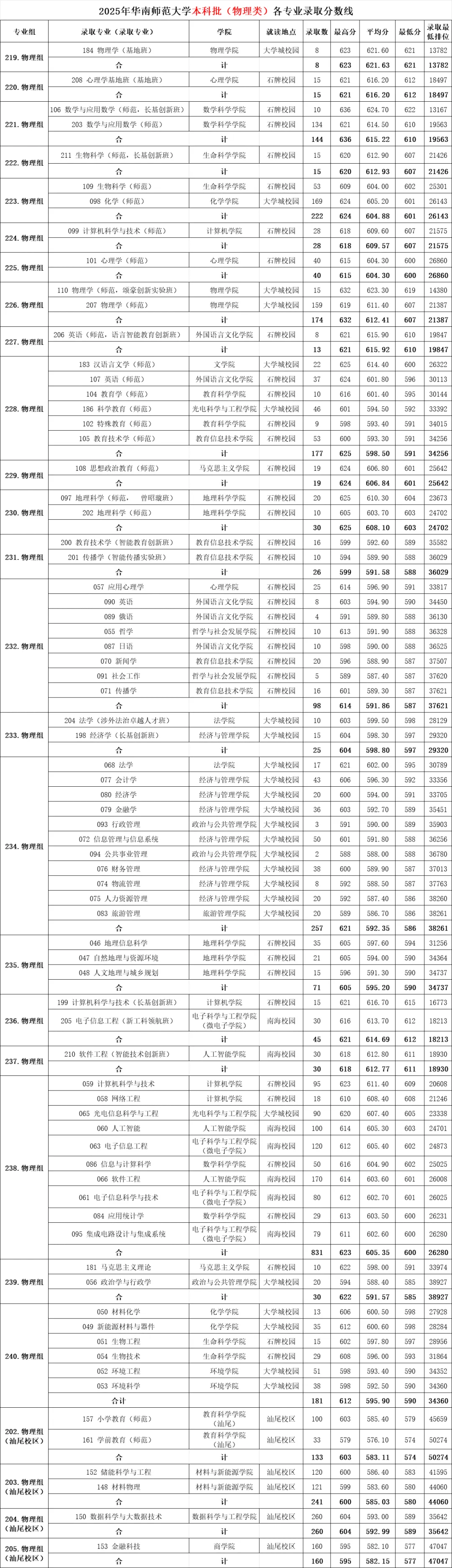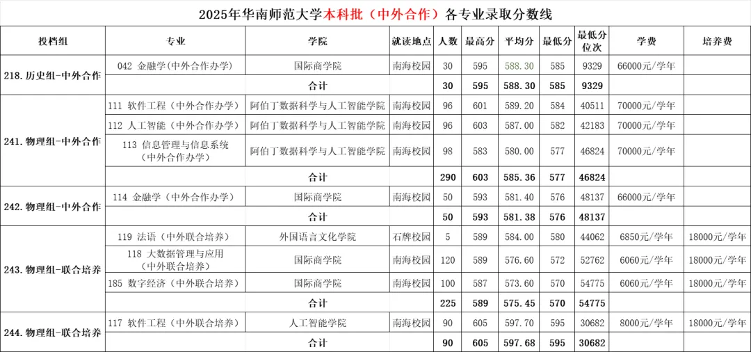 >华南师范大学2025年各专业录取分数线!