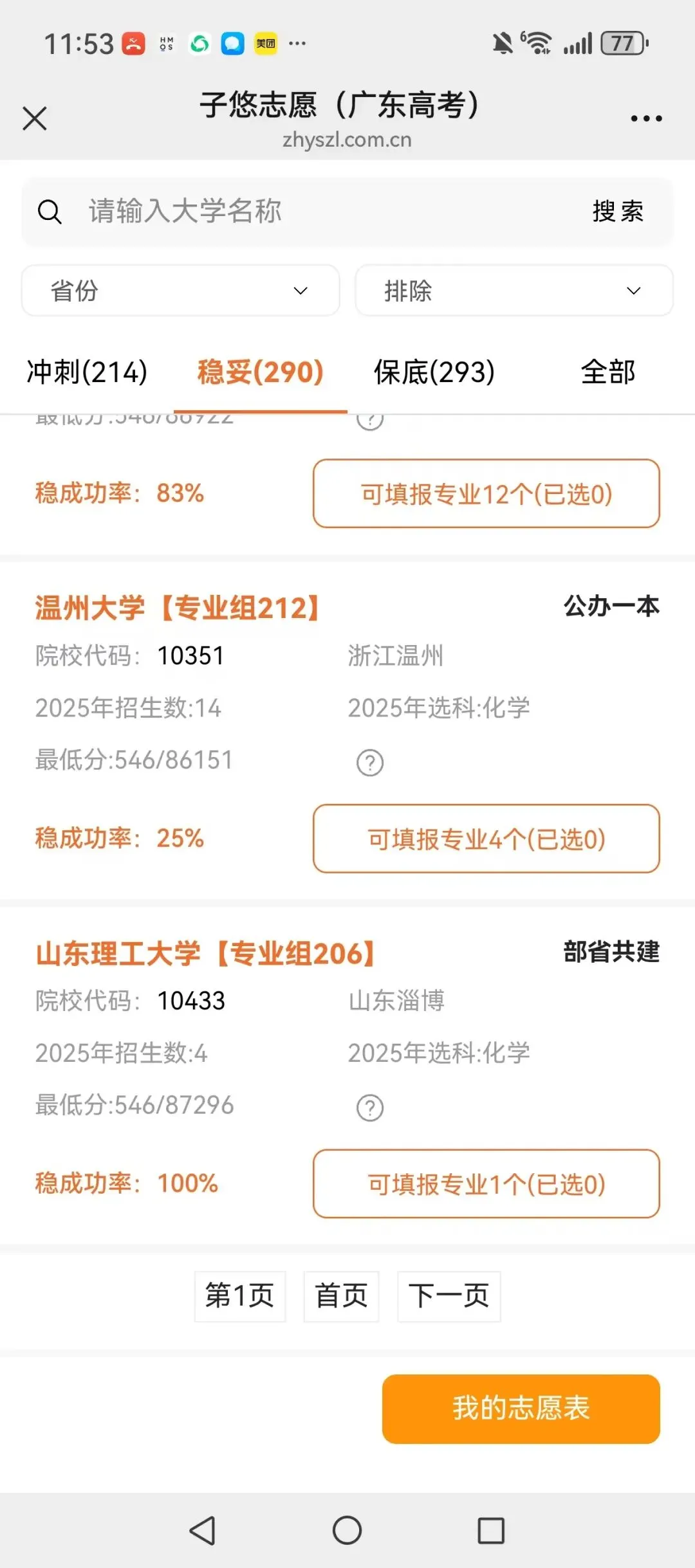 一键模拟志愿填报、稳冲保大学