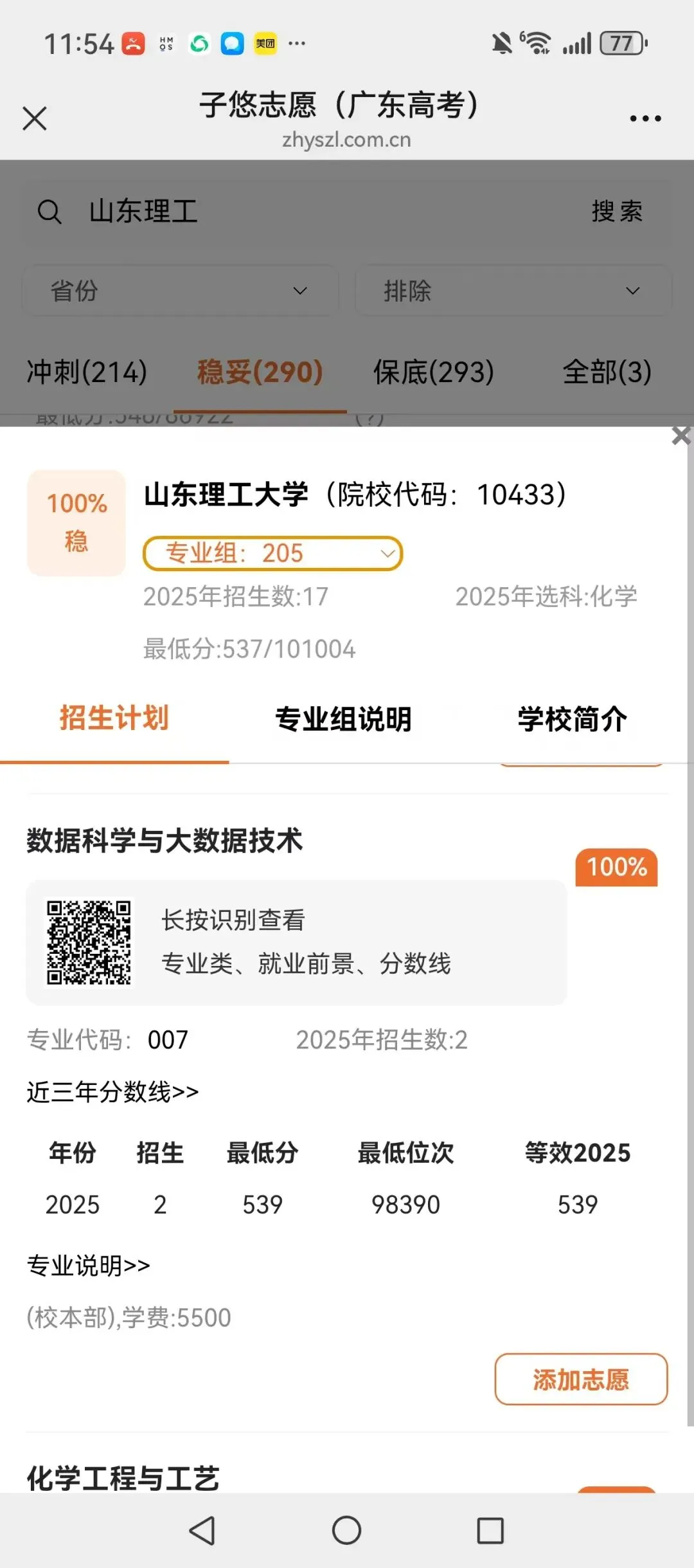 识别左侧二维码,查大学、查专业