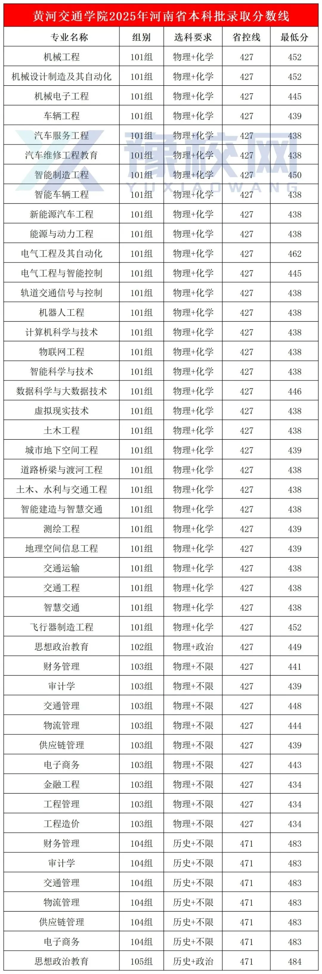 >黄河交通学院2025年河南省本科批录取分数线