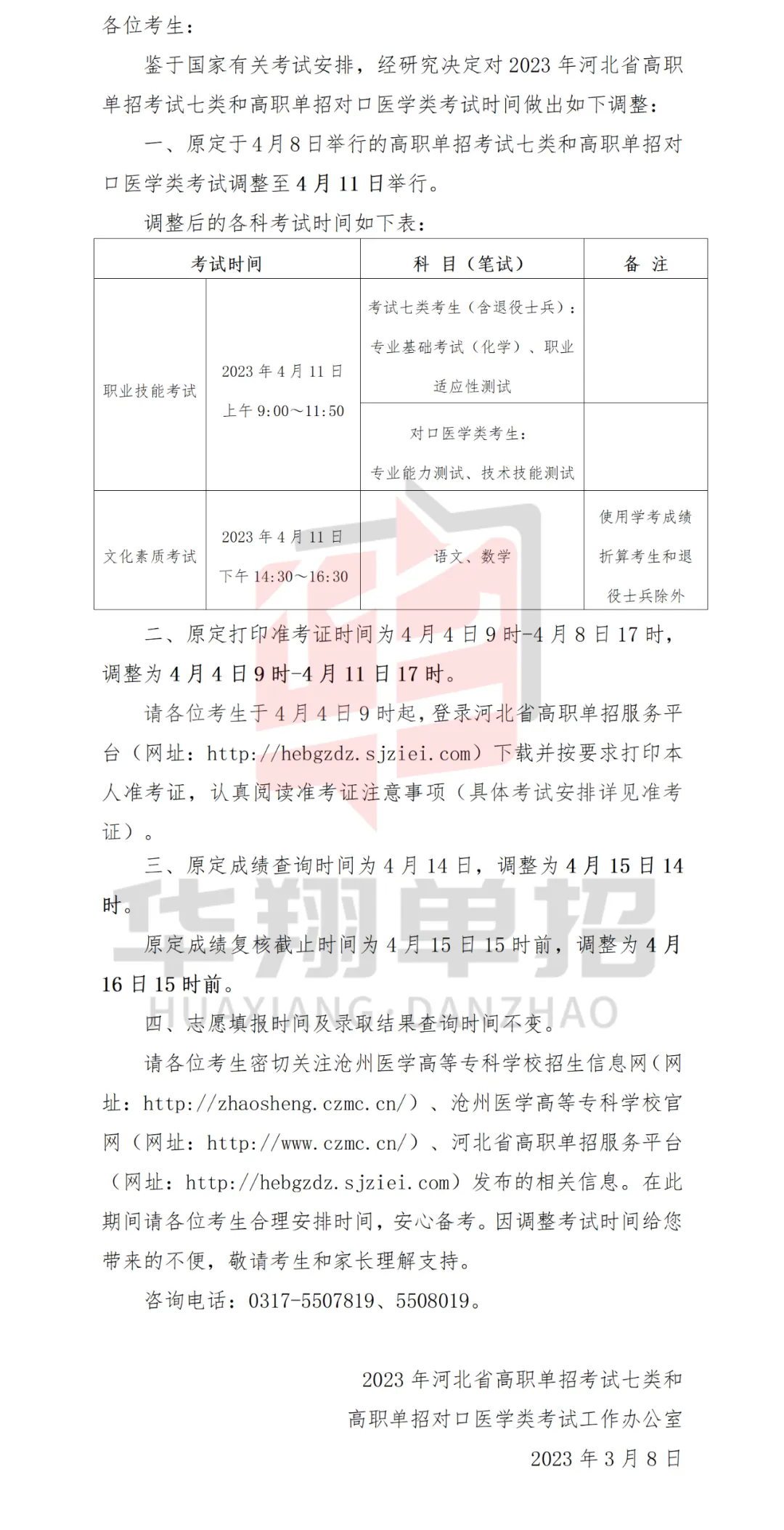 >【考试推迟】2023年河北单招考试七类和对口医学类考试调整至4月11日举行