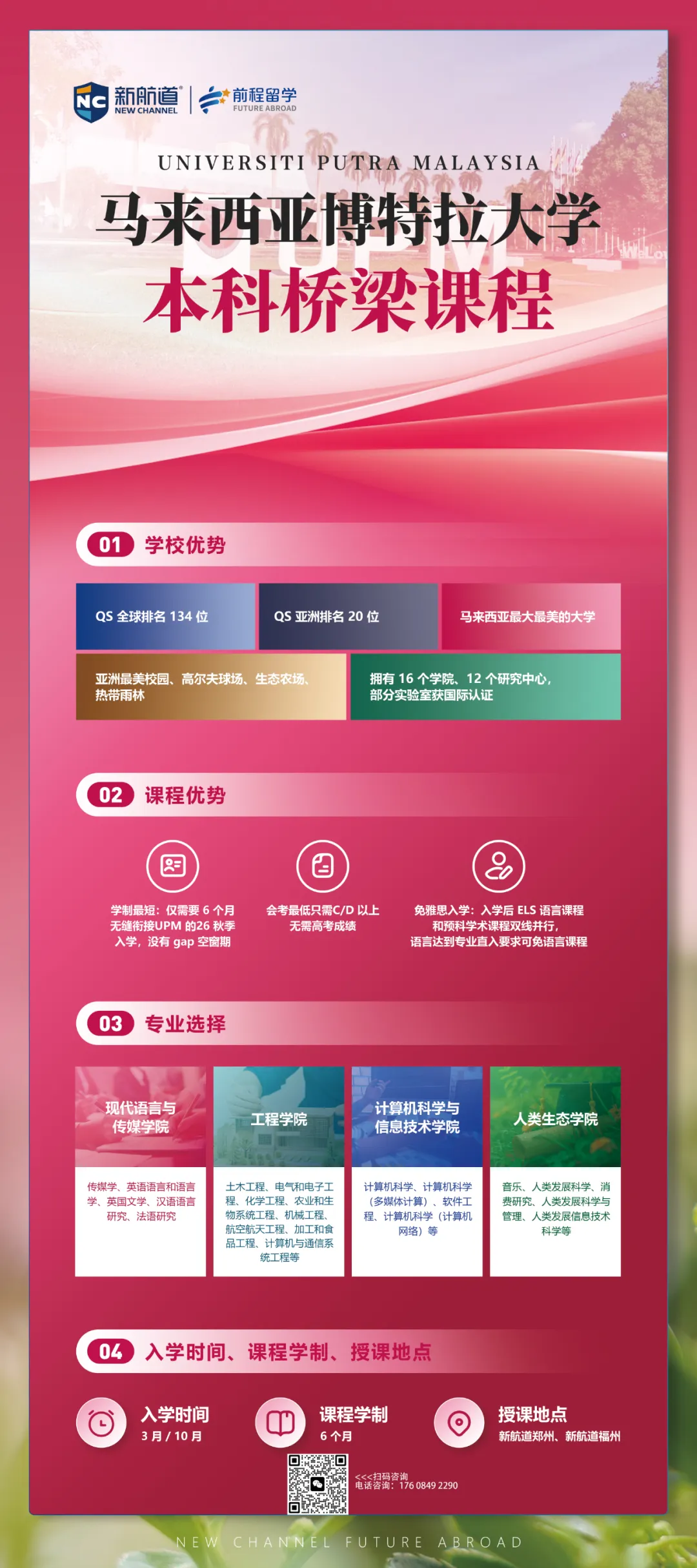 建议想去马来西亚留学的同学和家长尽早规划!想了解马来西亚博特拉大学预科,马来西亚留学申请,可以联系长沙新航道欧亚中心官方咨询电话:17608492290(微信同号)