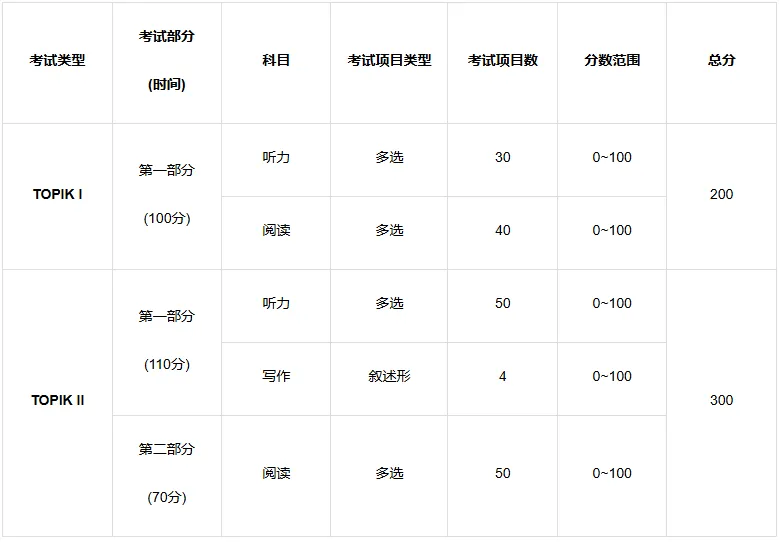 • 考试类型(等级): TOPIK I(初级), TOPIK II(中级,高级)