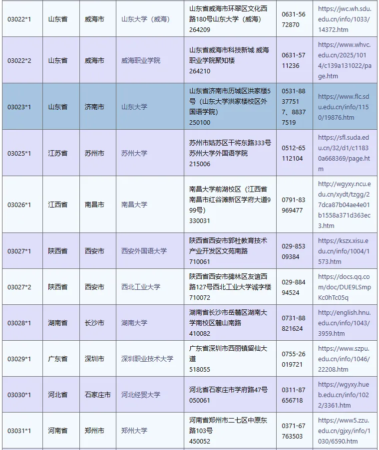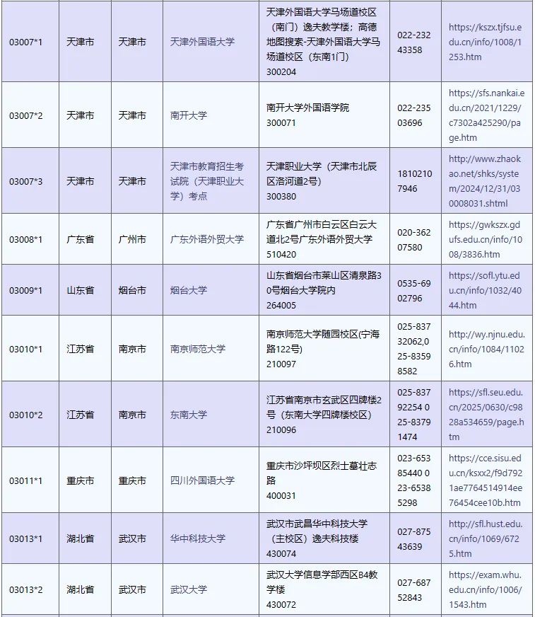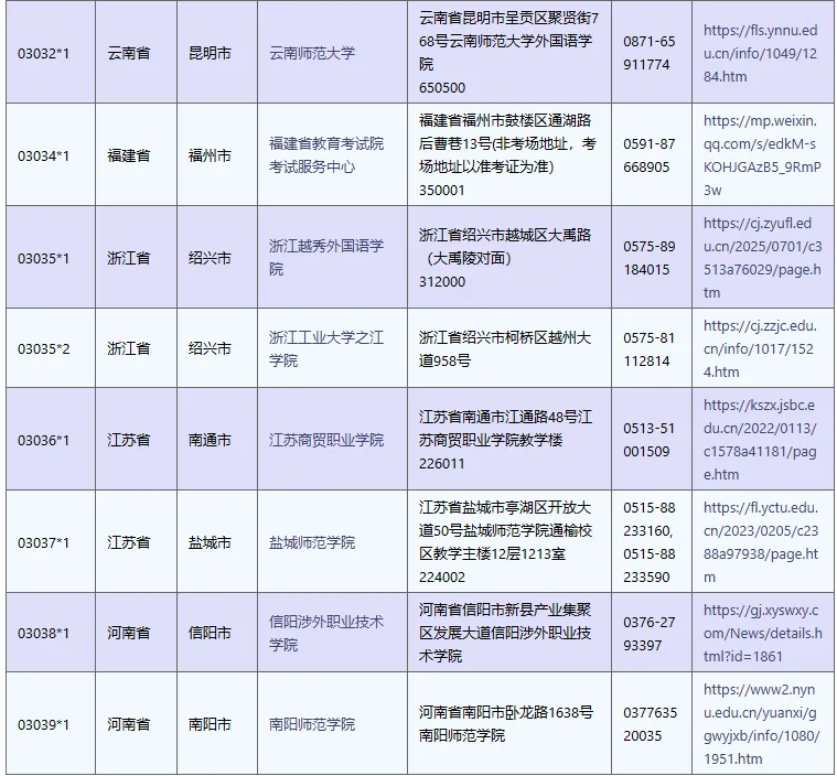 中国考点信息表